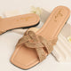 Flat pump in pointed shape made in denim with bow on it