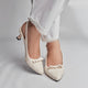 Premium artificial leather court shoes, adorned with a meticulously crafted bow detail for a sophisticated finish. Designed for ultimate comfort, they feature a soft interior lining and a lightweight sole, ensuring all-day wearability. Perfectly balancing style and practicality, these shoes elevate casual ensembles and complement smart-casual attire with unparalleled charm and finesse.