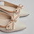 A cushioned interior meets a fine outer shell, finished with a sleek grosgrain bow for a silhouette that’s equal parts polished and playful.