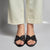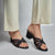 Square shape summer slides in cross over pattern with a comfortable sole.