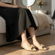 "Step into timeless elegance with our Dazzle Grace sandals — crafted in a metallic shimmer finish that catches every light beautifully. The sleek design blends modern charm with effortless sophistication, while the soft cushioned sole keeps every step as graceful as it is glamorous. Perfect for evenings that call for a little sparkle and a lot of style." ✨