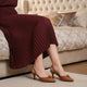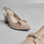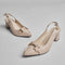 Crafted with a soft- upper and antique buckle, these heels feature a block heel and sling back strap. A graceful blend of sparkle and subtlety for refined occasions.