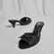 Step out in sophistication with this high-quality black slipper crafted from embroidered mesh. The small front opening adds a delicate touch, while the sleek bow detail exudes timeless elegance. Finished with a comfortable cone heel, this slipper is the perfect blend of style and poise for any occasion.
