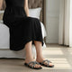 New block heel slipper having gold chain buckle on it which makes perfect look for formal or casual occasions.