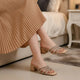 Square shape summer slides in cross over pattern with a comfortable sole.