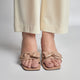 Square shape summer slides in cross over pattern with a comfortable sole.