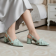 Flat pump in pointed shape made in textured patent with versace buckle on it
