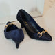 Pointed court shoes with double combination of color sea green and nude pink with white